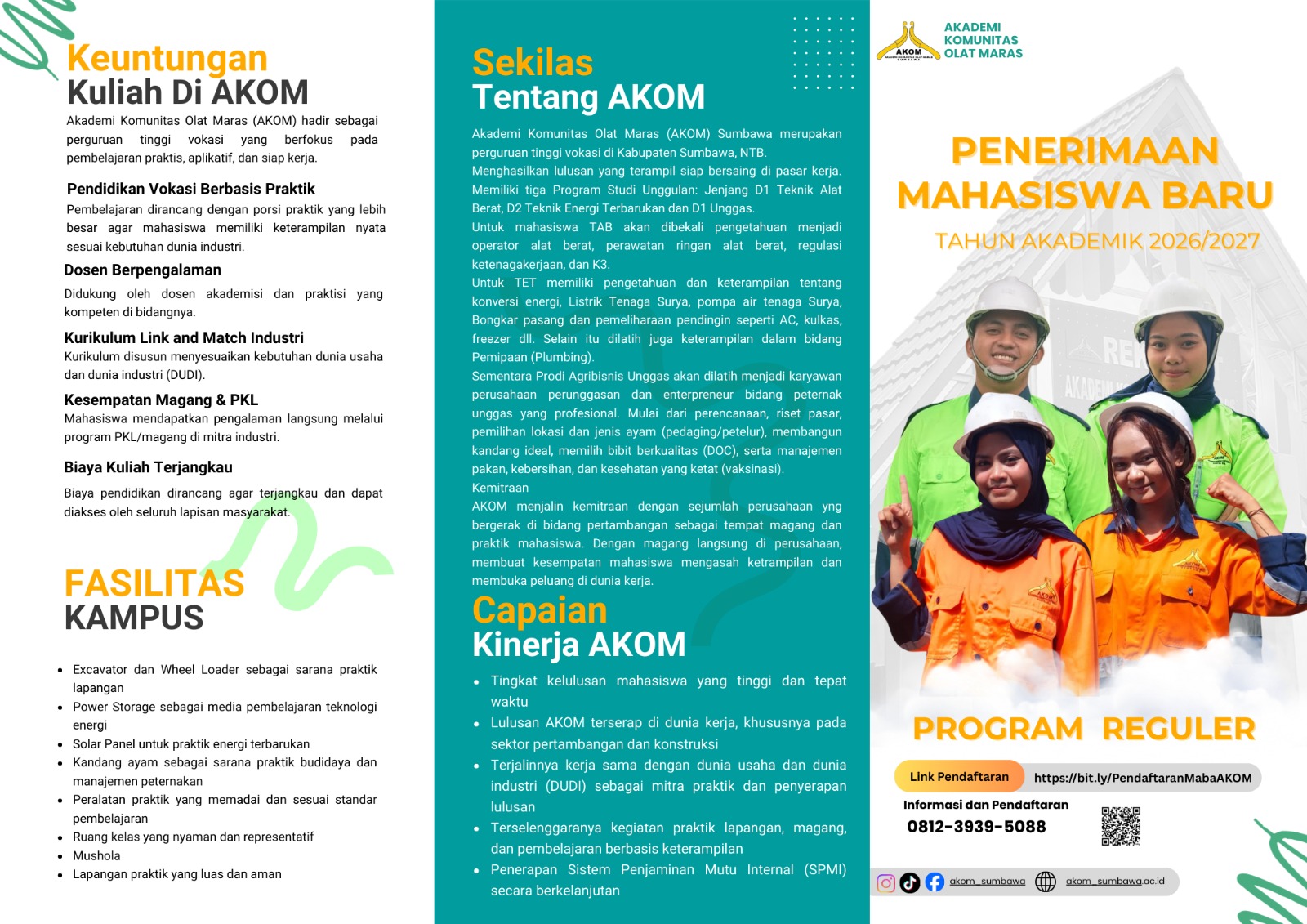 Saatnya melangkah lebih maju bersama Akademi Komunitas Olat Maras. Penerimaan Mahasiswa Baru telah dibuka untuk kamu yang ingin kuliah singkat, fokus praktik, dan siap terjun ke dunia kerja. Dengan pilihan program studi vokasi yang relevan dan kampus terakreditasi BAN-PT, AKOM siap membantumu meraih masa depan yang lebih cerah. Ayo daftar sekarang dan jadi bagian dari generasi terampil! 💪🎓